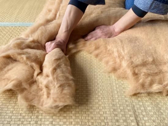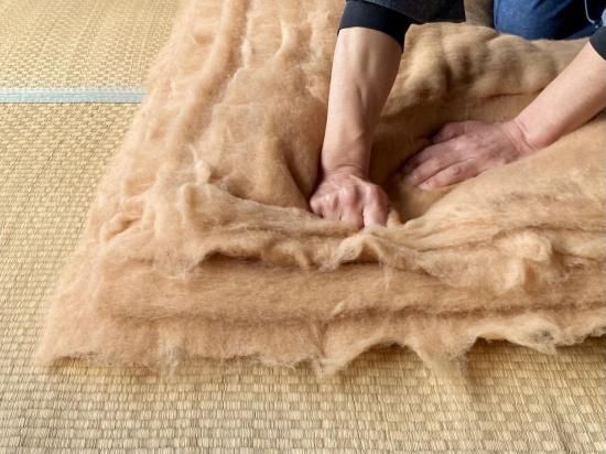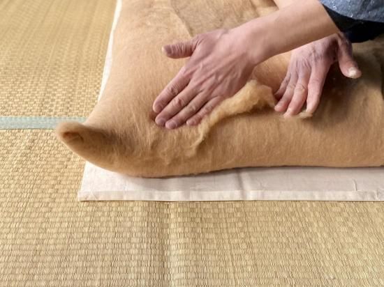 ふとん叩きなどで叩くと綿の繊維を傷つける原因になりますので、表面のほこりをホウキなどで優しく掃く程度にしてください。